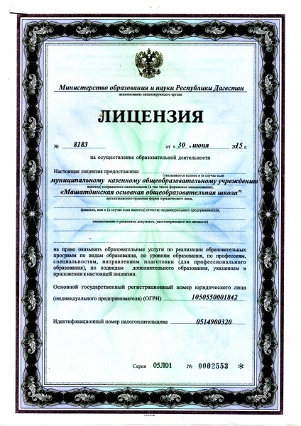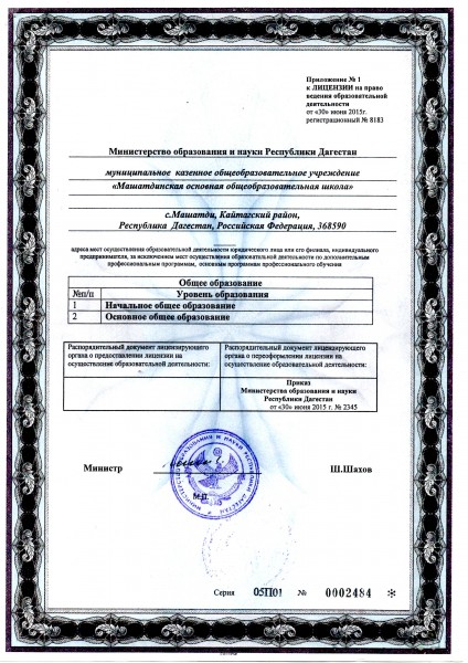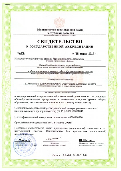 Полное наименование образовательной организации* Муниципальное казенное общеобразовательное учреждение "Машатдинская основная общеобразовательная школа"